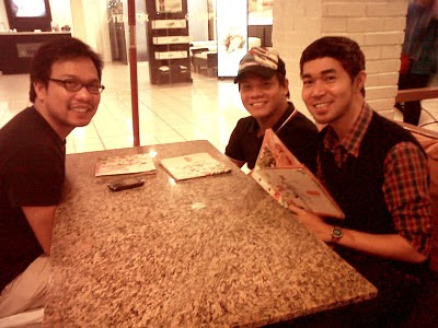 | (L-R) TL, Rye and myself at Cravings Restaurant in Edsa Shangri-La. Rye said food servers should also learn photography. LOL! |